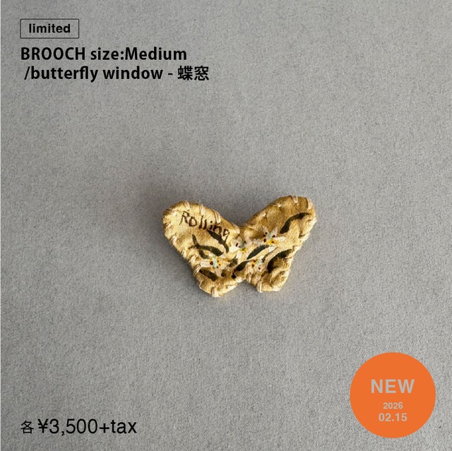 *販売期間:<limited> 数量限定のため、なくなり次第終了 Type:BROOCH name:rolling butterfly window -蝶窓 Color:Gold ("FAKE" series(fabric/偽物の財宝)) price:¥3,500+tax (+送料380円) size :約 w40 × h30(mm) material: 生地:中綿・ポリエステル 等 金具:真鍮 *商品の性質上、個体差があります。 ★ギフトラッピング対応:1点 + ¥100 別項目の「Gift Wrapping」をご購入ください。 複数購入される方で、ラッピングの有無が混在する方は 備考欄にラッピング希望の対象商品について記載ください。 ラッピングの参考写真は別項目に掲載している「gift wrapping」のページをご覧ください。 ーーーーーーーーーーーーーーーーーーーーーーーーーーーーー *ご注文いただいてから、 発送までにおよそ一週間ほどお時間いただいております。 *手作りのため一点ごとの表情は若干異なります。 あらかじめご了承ください。 *売り切れの表示となっている商品に関しても、 商品によって追加生産が可能な場合があります。 「contact」からお問い合わせください。 *デリケートな作りです。 強い衝撃などにより破損が生じる場合がございます。 引っ掛かりなどにもご注意の上、無理なご使用はお避けください。 *初期不良以外の返品・交換は一切受け付けておりません。